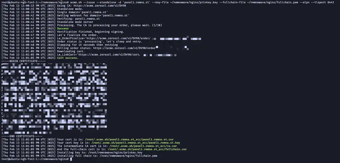 acme.sh --issue --standalone -d 'DOMAIN' --key-file /opt/remnawave/nginx/privkey.key --fullchain-file /opt/remnawave/nginx/fullchain.pem --alpn --tlsport 8443